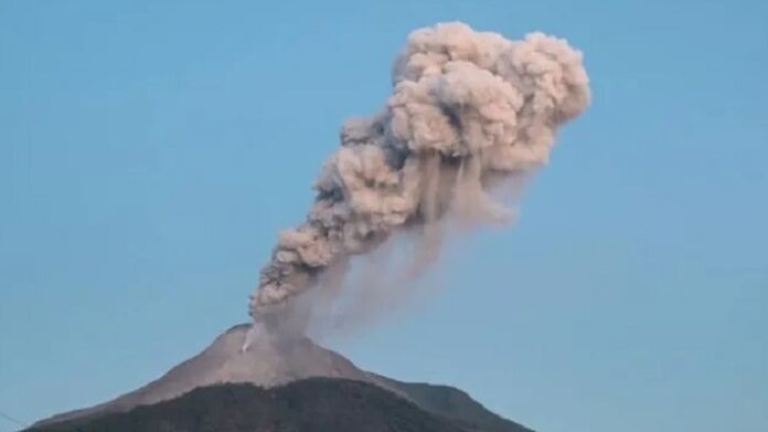 Las imágenes de las cámaras de vigilancia mostraron un flujo piroclástico que probablemente se produjo por “el desplome de material del flanco norte del cráter sureste” del monte, indicó el organismo.