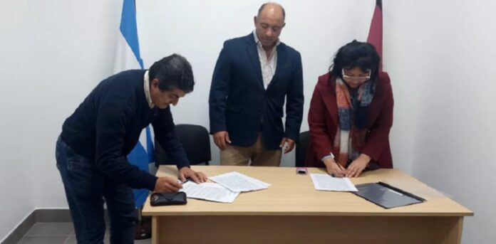 El secretario de Obras Públicas, Hugo de la Fuente, y la intendenta de Cafayate, Rita Guevara, firmaron un convenio para realizar una obra de infraestructura urbana en la localidad de los Valles Calchaquíes.