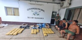 Los ciudadanos fueron interceptados a orillas del Río Bermejo y llevaban bolsones cargados con 40 paquetes que contenían la droga.